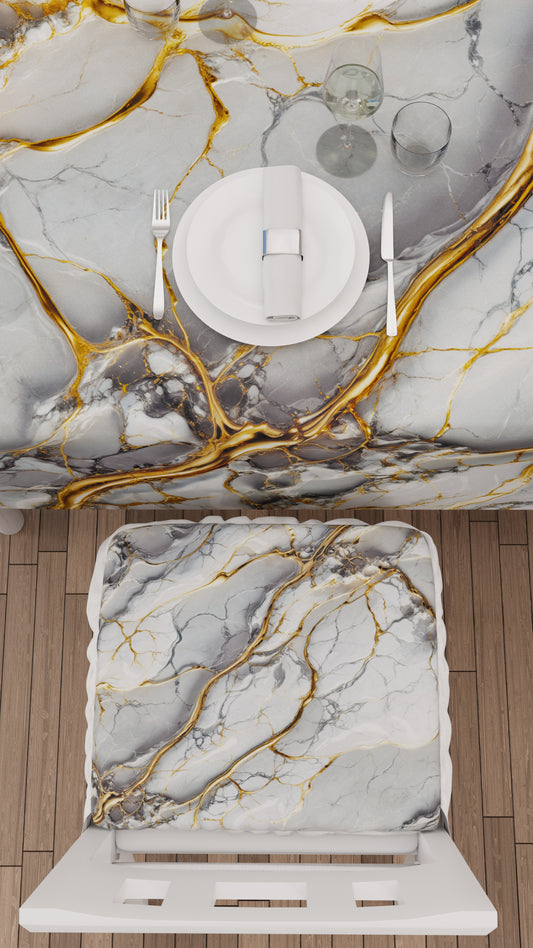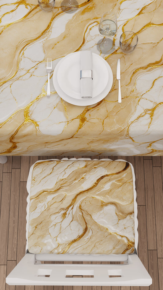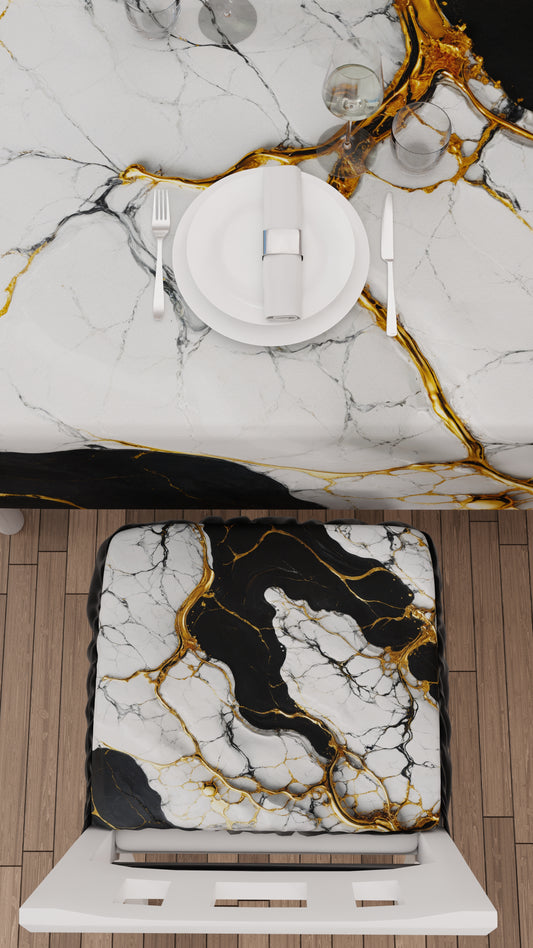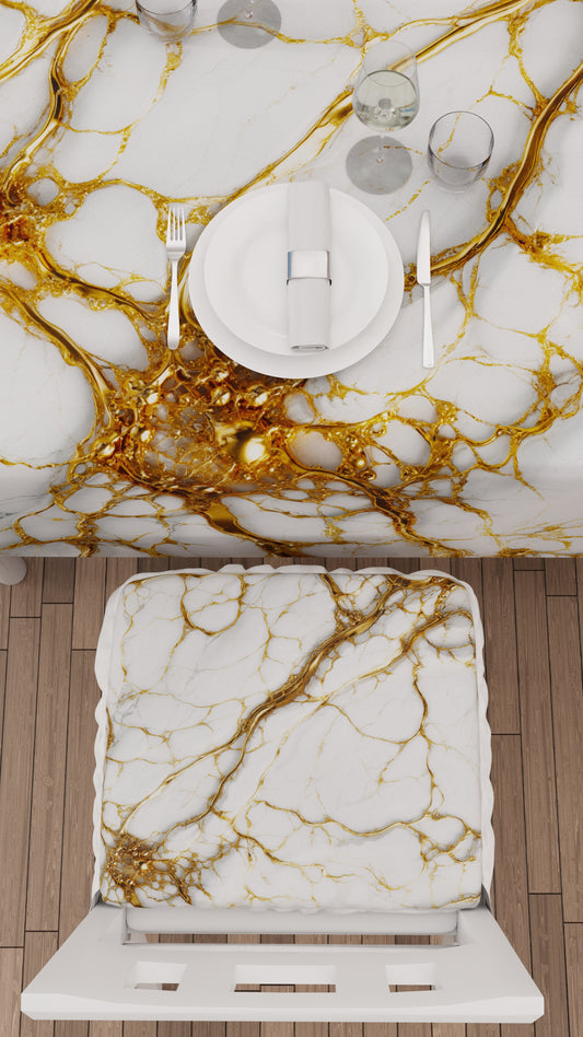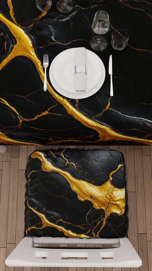 Cuscini per Sedie con Elastico Coprisedia Effetto Marmo Nero e Oro - ONYXILITE