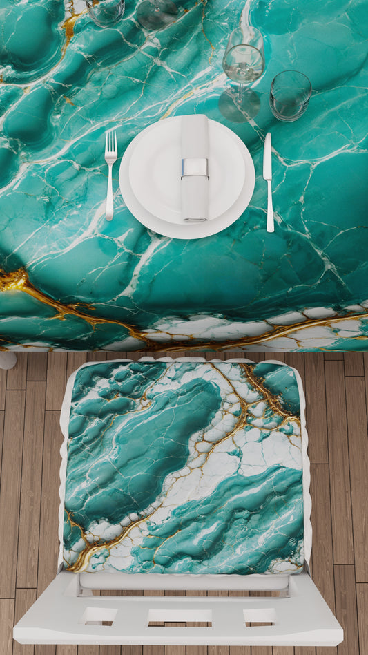 Cuscini per Sedie con Elastico Coprisedia Effetto Marmo Aquamarina - AQUATIQUE