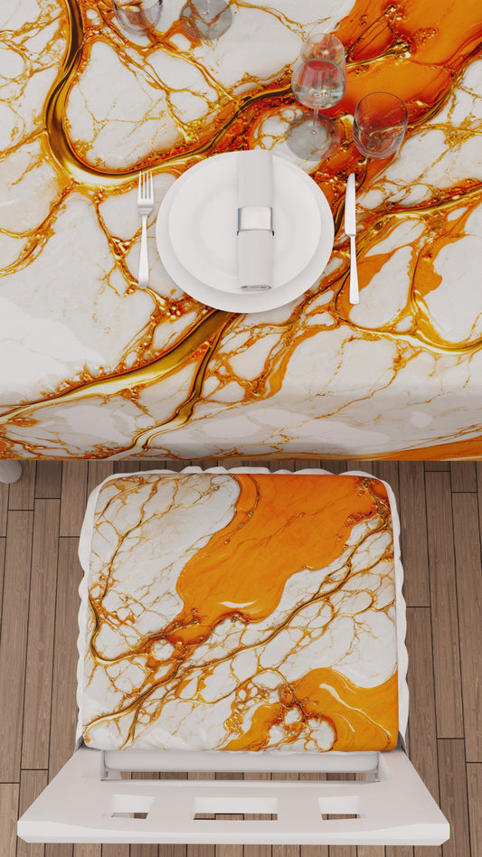 Cuscini per Sedie con Elastico Coprisedia Effetto Marmo Arancione - AURANGE