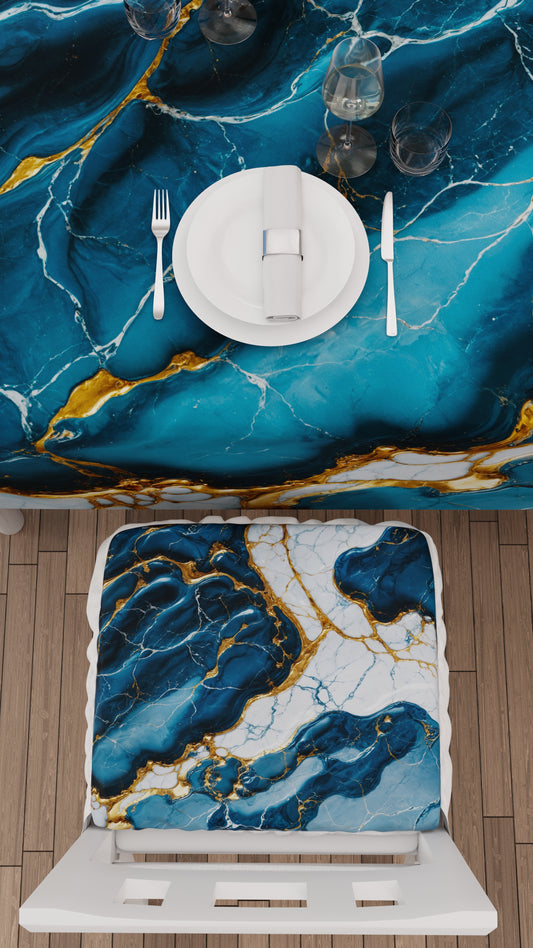 Cuscini per Sedie con Elastico Coprisedia Effetto Marmo Blu Oceano - OCEAGLINT