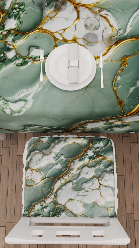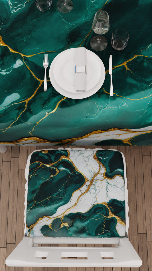 Cuscini per Sedie con Elastico Coprisedia Effetto Marmo Verde - PISTACHIUS