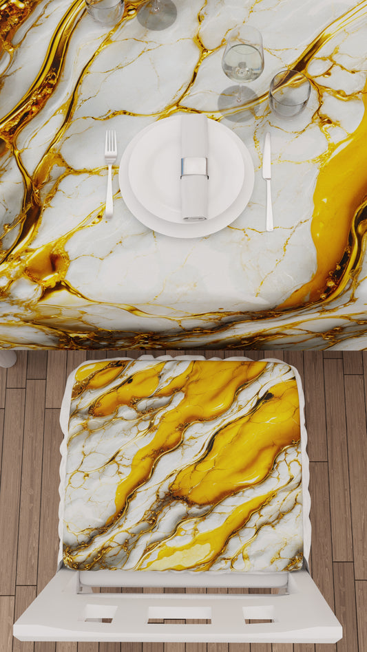 Cuscini per Sedie con Elastico Coprisedia Effetto Marmo Giallo - YELLOOOWW