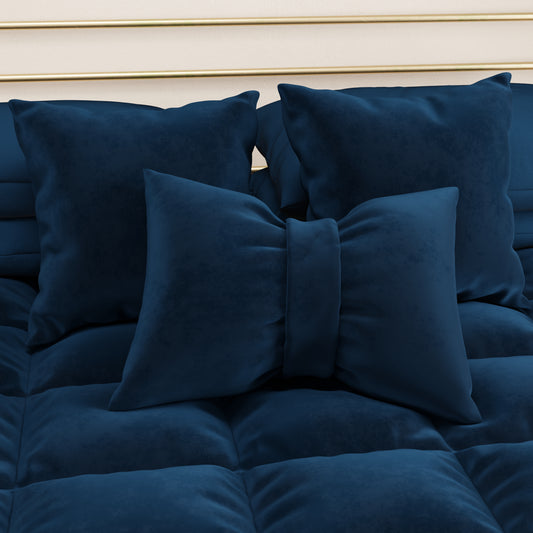 Cuscino Arredo Fiocco in Velluto 40x50 cm, Cuscino divano Blu