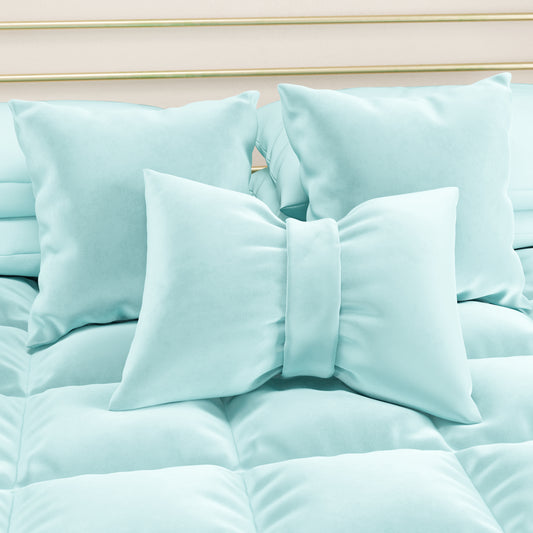 Cuscino Arredo Fiocco in Velluto 40x50 cm, Cuscino divano Celeste