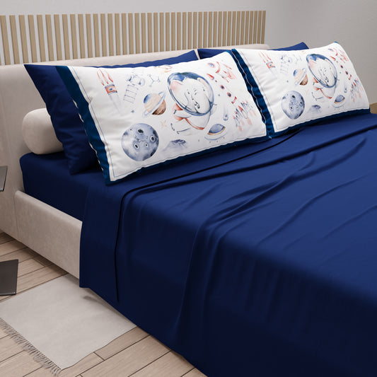 Lenzuola in Cotone, Completo Letto con Federe in Stampa Digitale Space