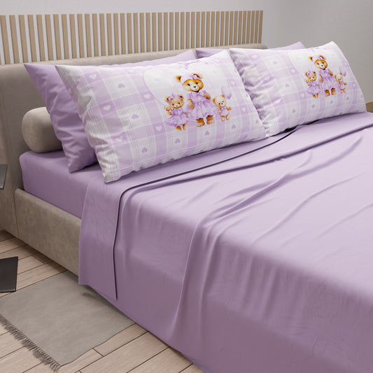 Lenzuola in Cotone, Completo Letto con Federe in Stampa Digitale Teddy Love Lilla