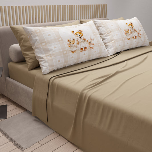 Lenzuola in Cotone, Completo Letto con Federe in Stampa Digitale Teddy Love Tortora