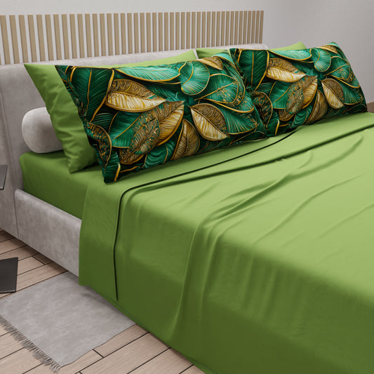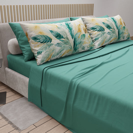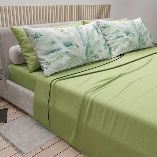 Lenzuola in Cotone, Completo Letto con Federe in Stampa Digitale Palmwater Salvia