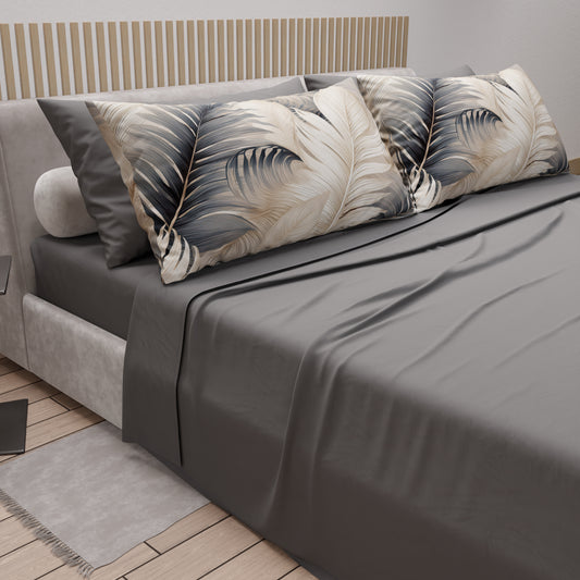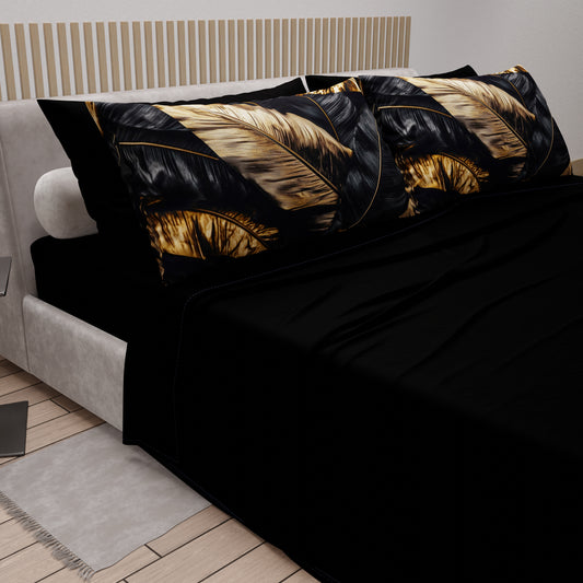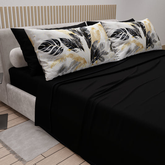 Lenzuola in Cotone, Completo Letto con Federe in Stampa Digitale Palmwater Nero
