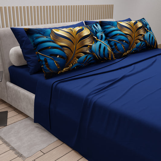 Lenzuola in Cotone, Completo Letto con Federe in Stampa Digitale Palmwater Ottanio