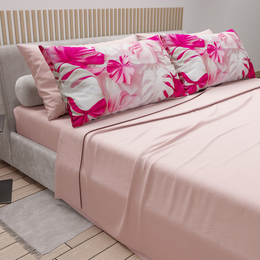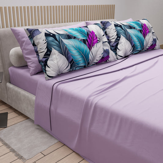 Lenzuola in Cotone, Completo Letto con Federe in Stampa Digitale Palmwater Lilla
