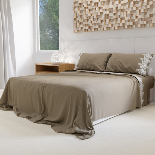 Lenzuola Percalle con Pizzo, Lenzuola Matrimoniali Cotone Tortora
