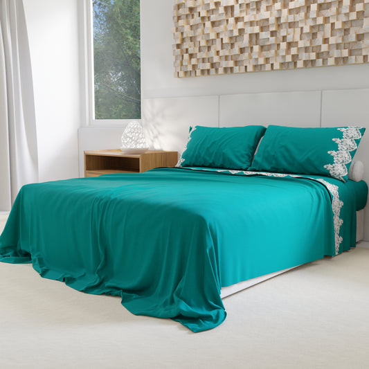 Lenzuola Percalle con Pizzo, Lenzuola Matrimoniali Cotone Ottanio