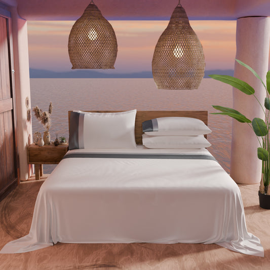 Lenzuola Matrimoniali in Puro Cotone Percalle con Doppia Balza in Raso - Grigio