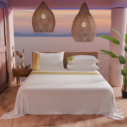 Lenzuola Matrimoniali in Puro Cotone Percalle con Doppia Balza in Raso - Oro
