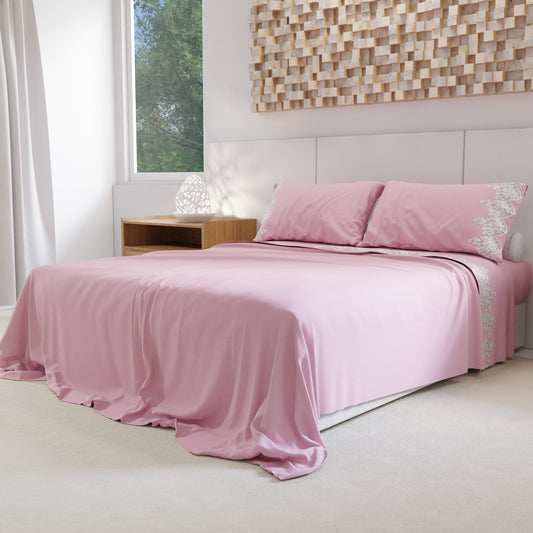 Lenzuola Percalle con Pizzo, Lenzuola Matrimoniali Cotone Rosa