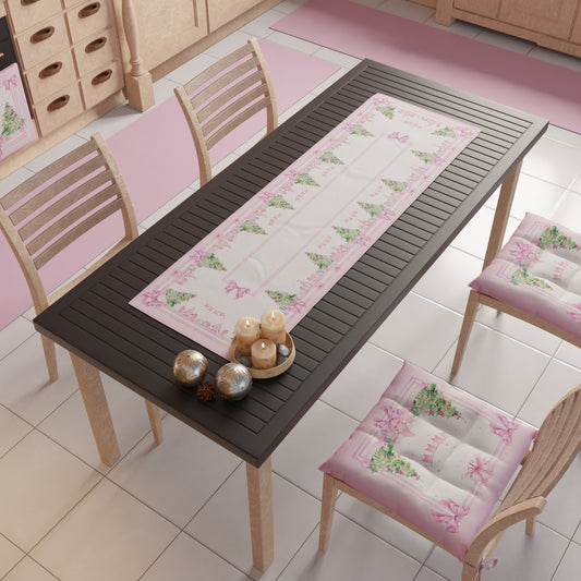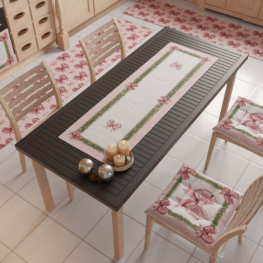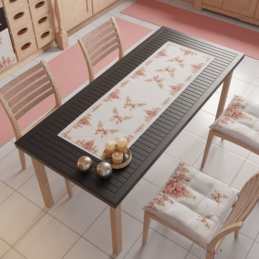 Runner Natalizi ,Runner Tavola Natalizio, Tovaglia Runner Natalizia, Runner Cucina Fiocco Rosa Piume