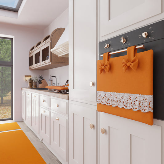 Copriforno Elegante Shabby Chic con Pizzo e Fiocchi Arancio