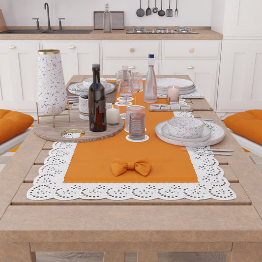 Centrotavola Cucina Elegante Shabby Chic con Pizzo e Fiocchi Arancio