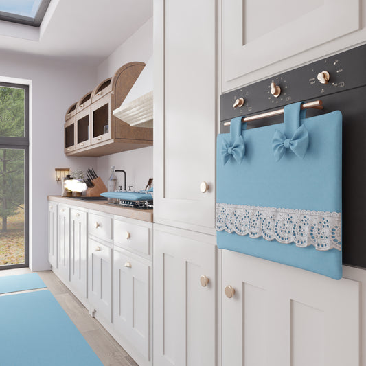 Copriforno Elegante Shabby Chic con Pizzo e Fiocchi Celeste