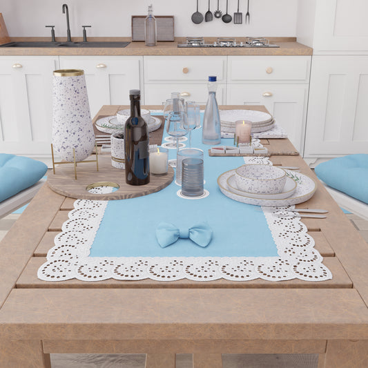 Centrotavola Cucina Elegante Shabby Chic con Pizzo e Fiocchi Celeste