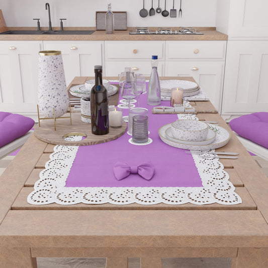 Centrotavola Cucina Elegante Shabby Chic con Pizzo e Fiocchi Lilla