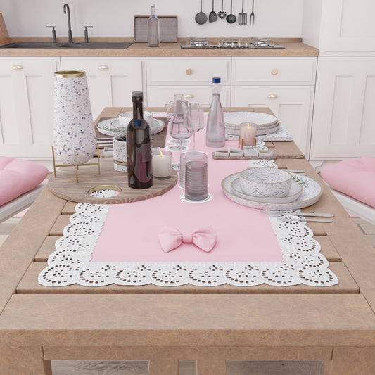 Centrotavola Cucina Elegante Shabby Chic con Pizzo e Fiocchi Rosa