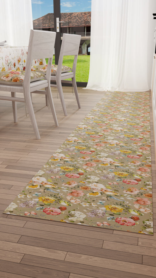 Tappeto Cucina Antiscivolo Passatoia Cucina lavabile, Floreale 06 Beige