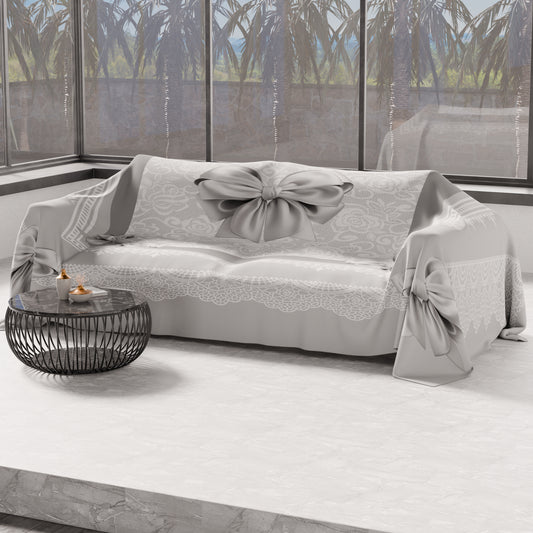 Telo Arredo Copridivano, Copriletto, Copritavolo e Copritutto in Microfibra | Fantasia Fiocco Grigio