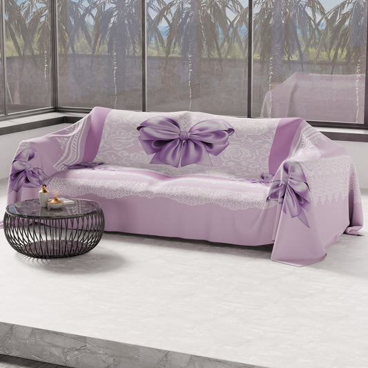 Telo Arredo Copridivano, Copriletto, Copritavolo e Copritutto in Microfibra | Fantasia Fiocco Lilla