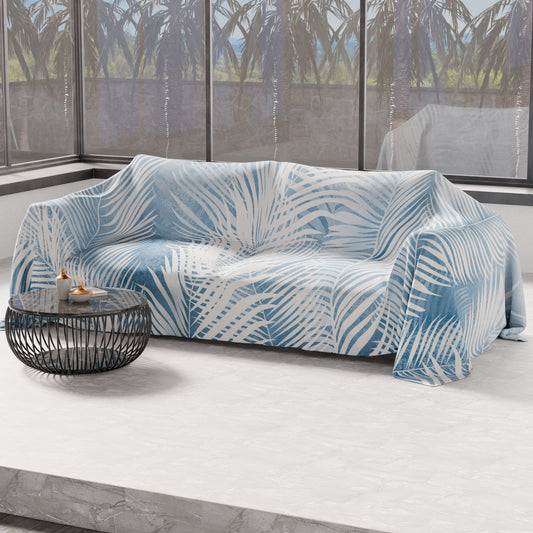 Telo Arredo Copridivano, Copriletto, Copritavolo e Copritutto in Microfibra | Fantasia Foglia Celeste