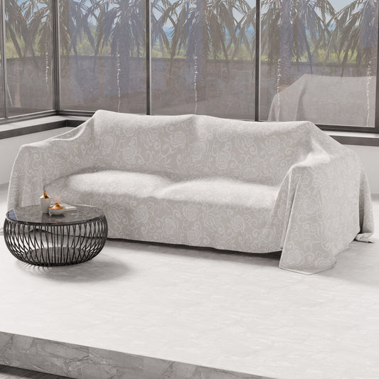 Telo Arredo Copridivano, Copriletto, Copritavolo e Copritutto in Microfibra | Fantasia Foglia Tortora