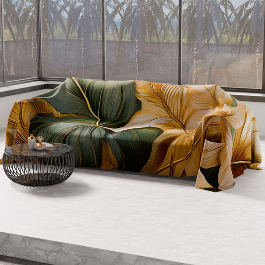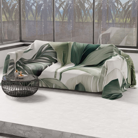 Telo Arredo Copridivano, Copriletto, Copritavolo e Copritutto in Microfibra | Fantasia Foglia Salvia