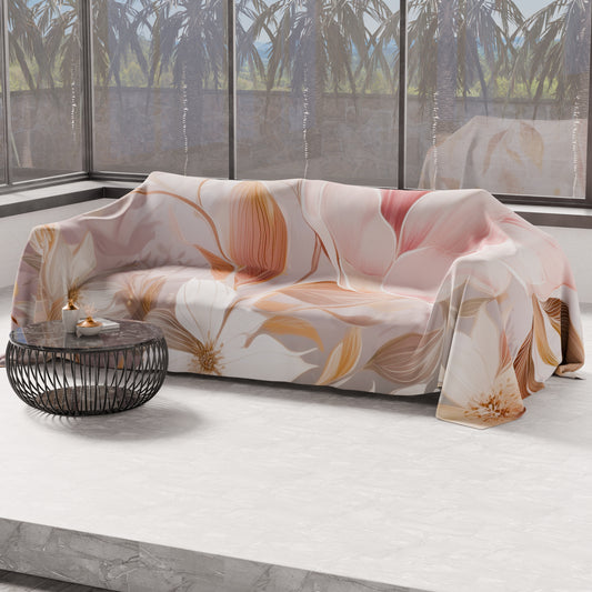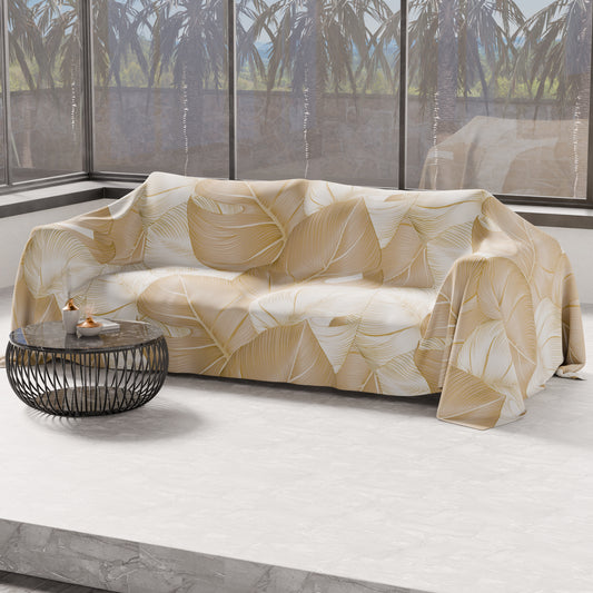 Telo Arredo Copridivano, Copriletto, Copritavolo e Copritutto in Microfibra | Fantasia Tropical Cipria e Oro