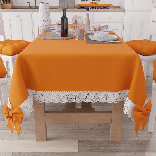 Tovaglia da Tavola Shabby Chic Copritavolo con Pizzo e Fiocchi Arancio