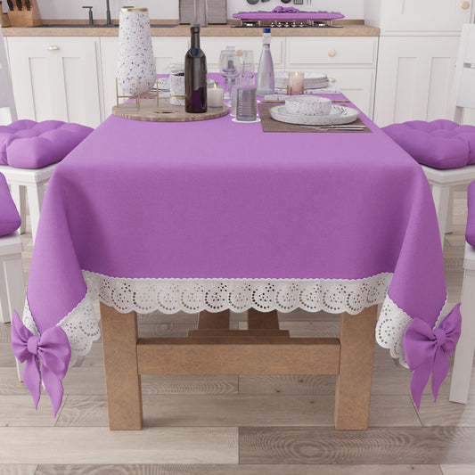 Tovaglia da Tavola Shabby Chic Copritavolo con Pizzo e Fiocchi Lilla