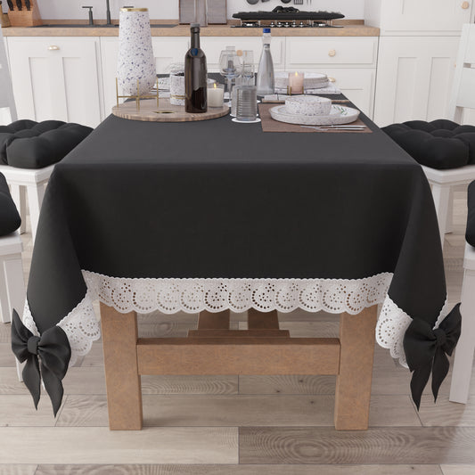Tovaglia da Tavola Shabby Chic Copritavolo con Pizzo e Fiocchi Nero