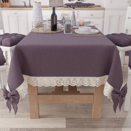 Tovaglia da Tavola Shabby Chic Copritavolo con Pizzo e Fiocchi Malva