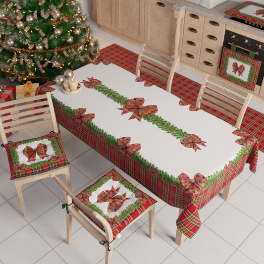 Tovaglia Natalizia, Tovaglia da tavola Antimacchia, Copritavolo da Cucina Fiocco Tartan, Fantasia Scozzese
