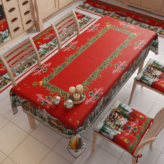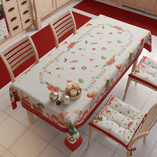 Tovaglia Natalizia, Tovaglia da tavola Antimacchia, Copritavolo da Cucina Santa Village