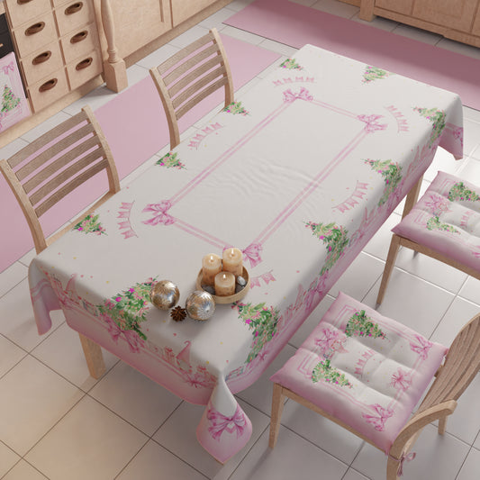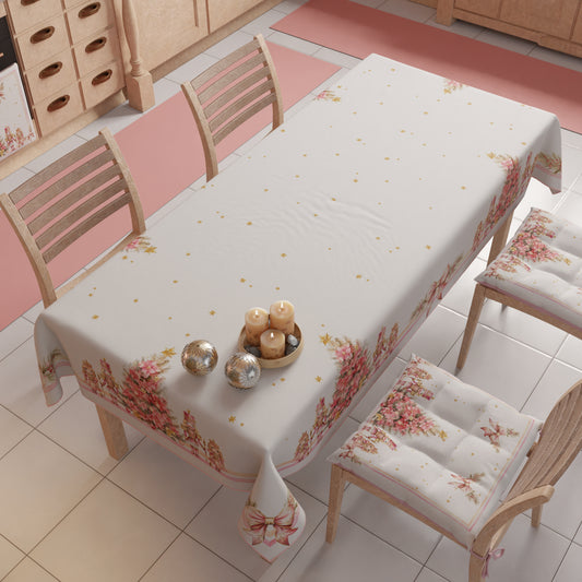 Tovaglia Natalizia, Tovaglia da tavola Antimacchia, Copritavolo da Cucina Fiocco Rosa Piume