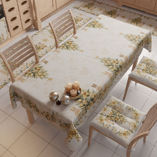 Tovaglia Natalizia, Tovaglia da tavola Antimacchia, Copritavolo da Cucina Xmas Gold
