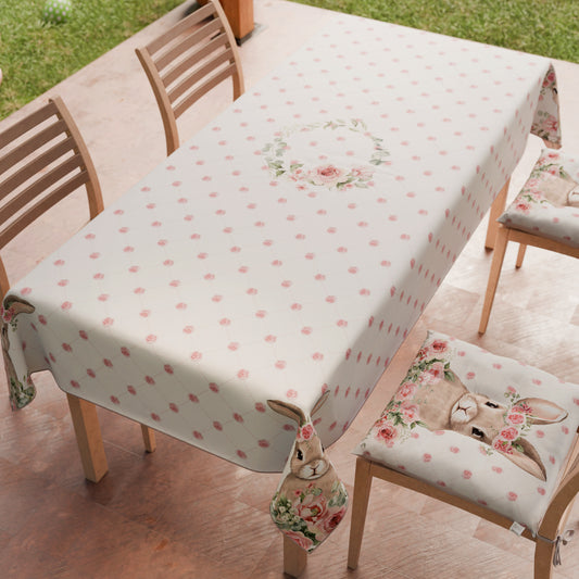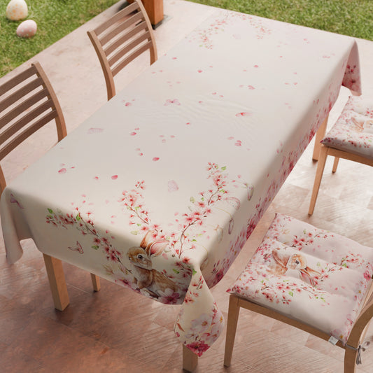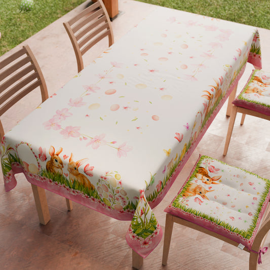 Tovaglia Pasquale da Tavola Antimacchia, Copritavolo Pasqua da Cucina Pink Rabbit