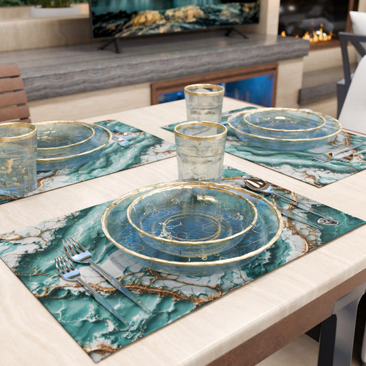 Tovagliette Americane Eleganti Effetto Marmo Acquamarina - AQUATIQUE