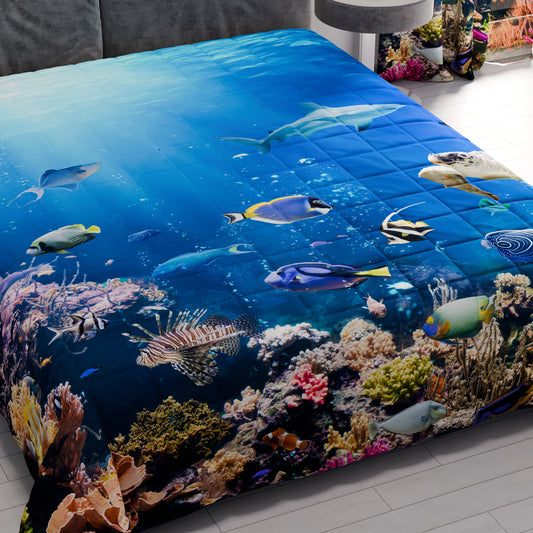 Trapuntino Copriletto Primaverile Autunnale in Stampa Digitale Acquario
