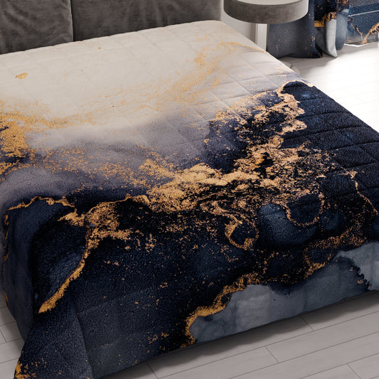 Trapuntino Copriletto Primaverile Autunnale in Stampa Digitale Marble 08 Blu