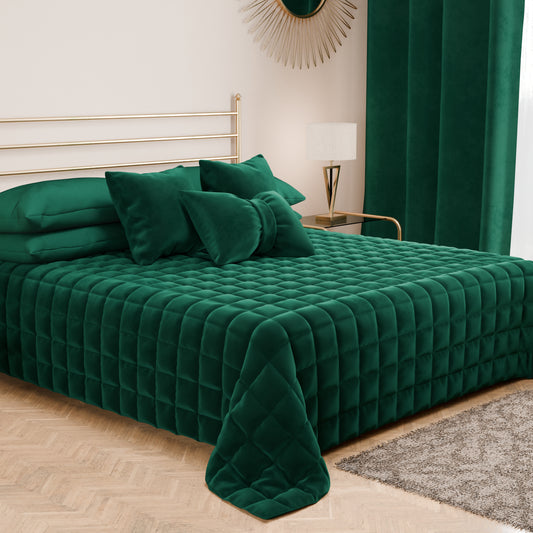 Trapuntino Copriletto Primaverile Autunnale in Velluto Double Face Smeraldo