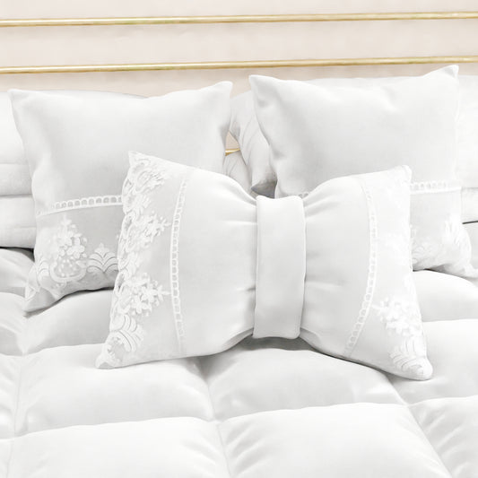 Cuscino Arredo Fiocco in Velluto e Balza con Pizzo Rebrodè 40x50 cm, Cuscino divano Bianco By Sissy