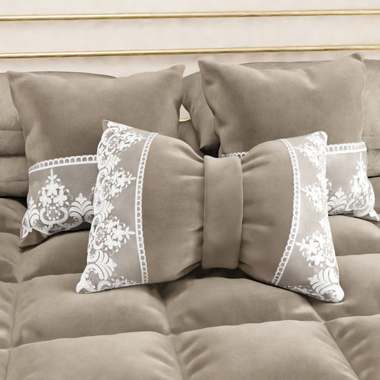 Cuscino Arredo Fiocco in Velluto e Balza con Pizzo Rebrodè 40x50 cm, Cuscino divano Fango By Sissy