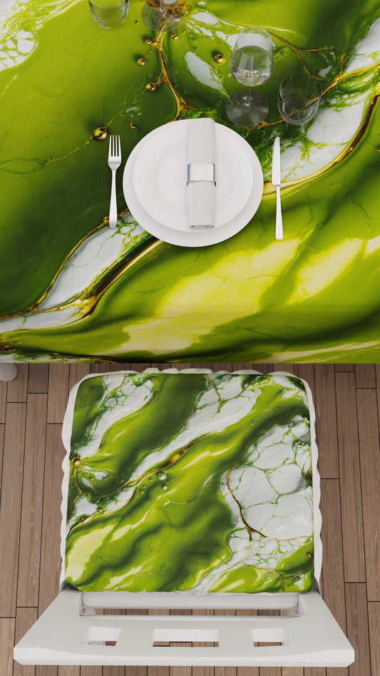Cuscini per Sedie con Elastico Coprisedia Effetto Marmo Verde - PISTACHIUS